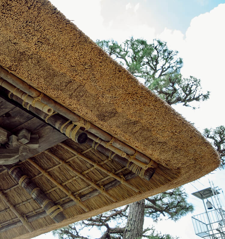 また数寄屋造りの世界においては、日本美の根幹をなす侘び寂びの情趣を表現する建築要素として、茅葺が洗練された形で取り入れられてきました。