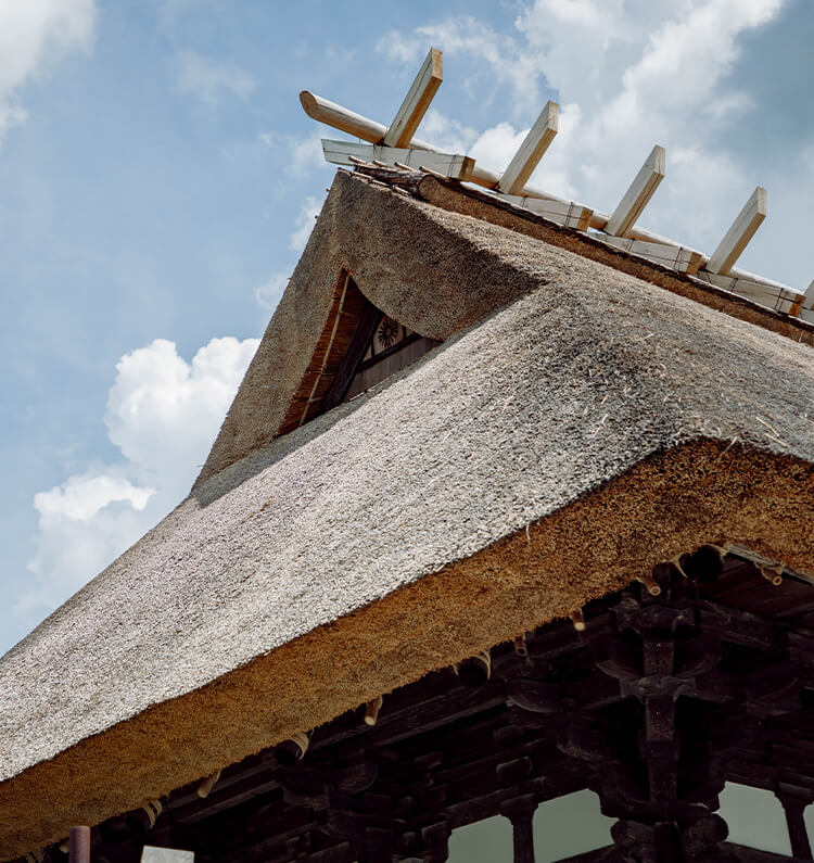 また数寄屋造りの世界においては、日本美の根幹をなす侘び寂びの情趣を表現する建築要素として、茅葺が洗練された形で取り入れられてきました。