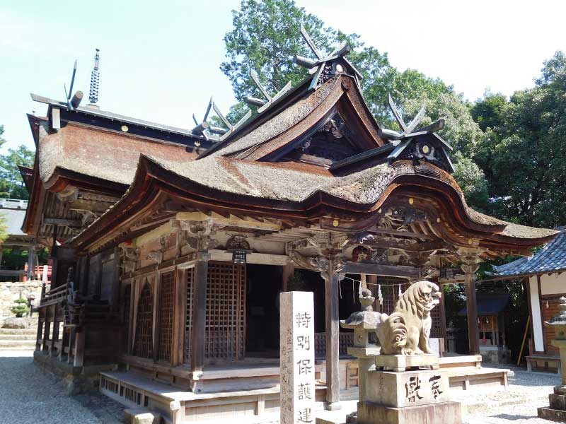 柏原八幡宮の本殿・拝殿は、天正13年(1585年)に羽柴秀吉の命により再建された、桃山時代を代表する神社建築で、国の重要文化財に指定されています。本殿は三間社流造、拝殿は入母屋造で、両者は背面で接続される複合社殿形式を採用し、後の権現造の先駆けともいわれます。総檜皮葺の屋根が優美な曲線を描き、室町様式の彫刻や装飾も見どころです。令和4〜5年には大修理が行われ、往時の姿をよみがえらせました。歴史的・建築的に高い価値を持つ社殿です。