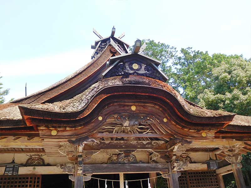 地元丹波市では数少ない国指定重要文化財建造物で、2024年に鎮座1000年という事もあり約50年ぶりの屋根葺替え工事となりました。何度か本殿の屋根は補修させてもらっており、棟飾りの千木も1つ落ちかけていました。弊社は全体工事のうちの屋根工事請負で檜皮葺施工を行いました。境内で違う工事が同時に行われたり、耐震補強工事の調査などで少し工程が変更になったり色々なことがありましたが、打ち合わせを繰り返し無事に施工することができました。